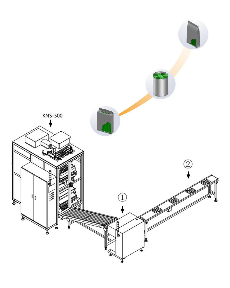 本半自動包裝生產(chǎn)線,由KNS-500自動條狀多列機、自動計數(shù)裝置、人工裝盒部分組成,可以自動完成從原料灌裝到自動計數(shù)、排出到人工裝盒的一系統(tǒng)過程。是減輕勞動強度和節(jié)約成本的結合。