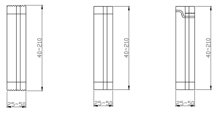 橫ロールの割數 2ツ割120~210mm 3ツ割80~150mm 4ツ割60~110mm 6ツ割40~75mm 橫シール幅によりピッチ可変範囲が異なる場合があります。 |